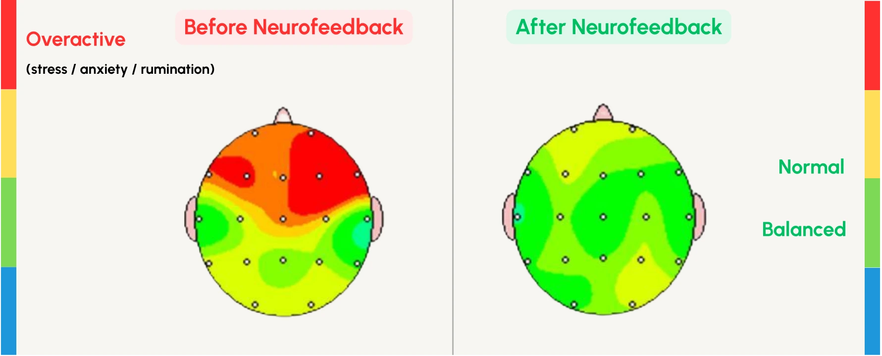 Neurofeedback is a science-backed way to train your brain how to calm itself. Your brain is always sending signals, and sometimes those signals get stuck in stress mode. This can lead to symptons like anxiety, brain-fog, overthinking, or constant feeling on edge.